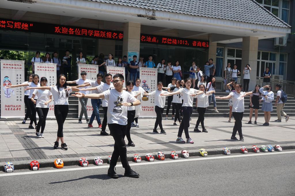 “第一套戏曲广播体操现在开始……”腕花小云手、单拉山膀、弓箭步,5月17日,买球(中国)官方网站兰花湖片区和南岸校区,30多名活力四射的大学生整齐划一地跳起了戏曲广播操,动感的音乐配上健美、灵动的身段,引得大量过往师生驻足观看,让人眼前一亮。同学们表演的是中国有史以来第一套“戏曲广播体操”,戏曲操创新性的把戏曲程式化动作融入到大众健身理念,以流行动感的音乐配合优美的戏曲基本功动作,2017年1月一经推出便刷爆...