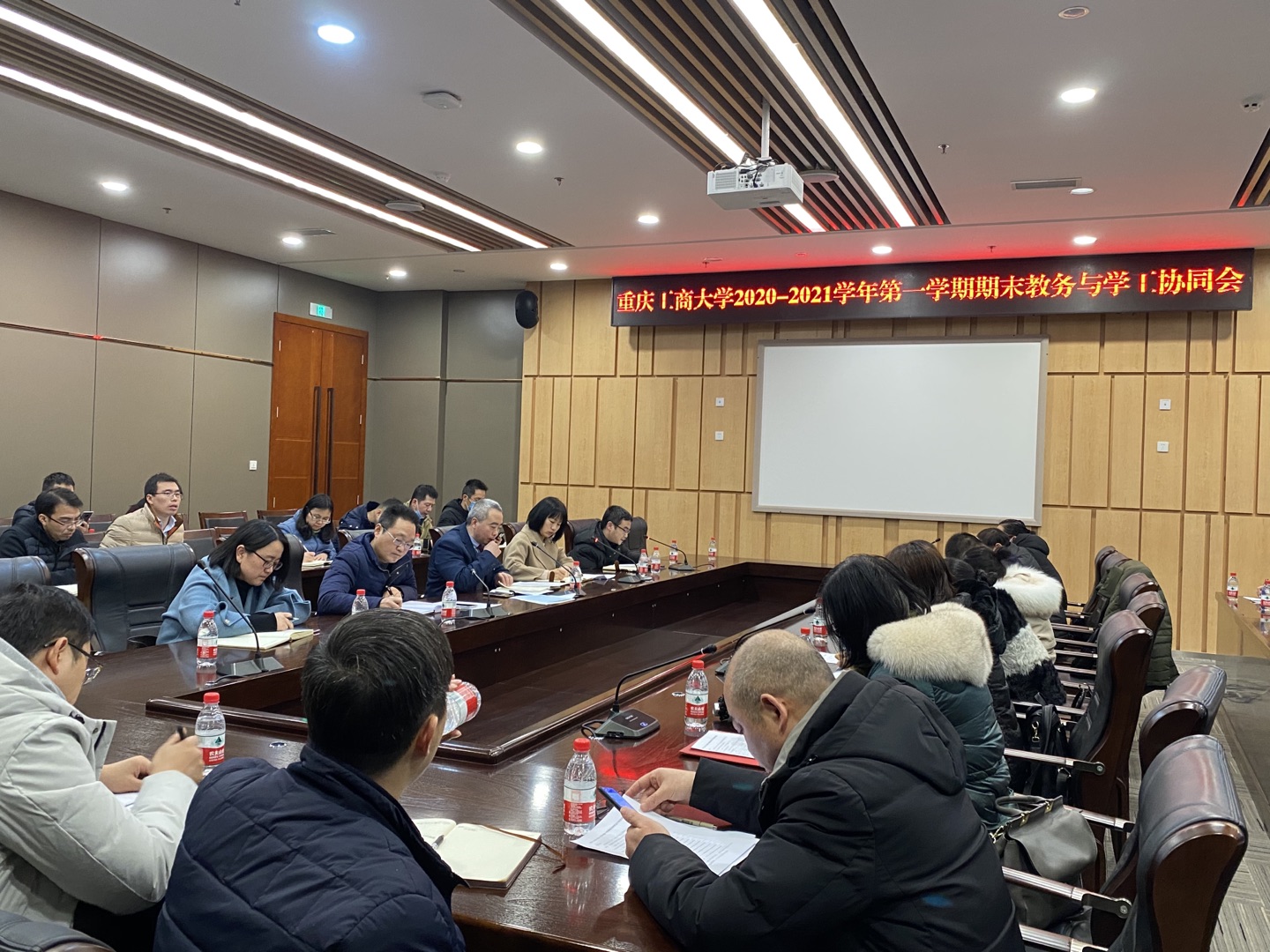 为保障期末教学运行顺利进行,12月29日下午,我校召开了本学期期末教务与学工工作协同会。各学院分党委(党总支)副书记、教学副院长,教务处、学生处负责人,相关科室负责人参加了会议。会议由教务处处长骆东奇主持。学生处处长申卫东对期末相关工作做了强调,一是期末考试临近,希望各学院加强疫情防控,元旦期间学生出行严格请假制度;二是要重视思想引导,做好元旦、寒假放假时间调整安排的师生思想工作。教务处副处长宋瑛...
