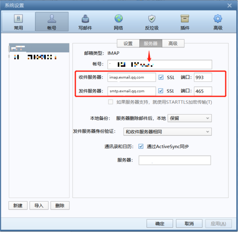 接收邮件服务器:imap.exmail.qq.com,使用SSL,端口号993
