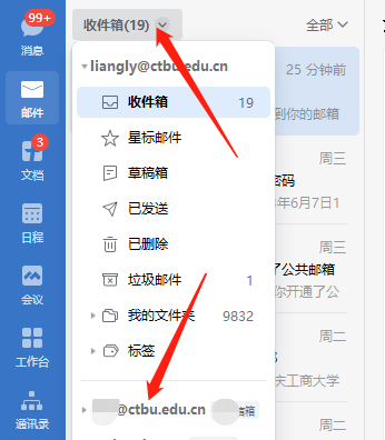 邮箱系统升级后,部门邮箱使用人需要重新绑定,请原来使用部门邮箱的教职工核对自己目前是否可进入部门邮箱。考虑到邮箱安全性的问题,部门邮箱将不在支持账号密码登录,部门邮箱管理员进入邮箱系统后,点击切换账号可进入部门邮箱: