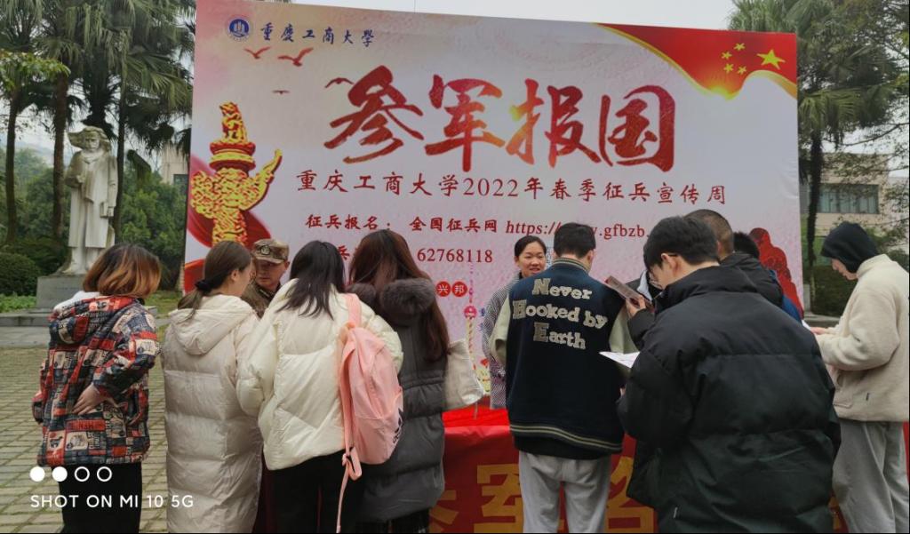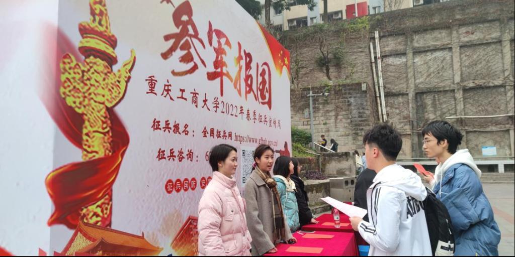 为加强征兵政策宣传,做好2022年春季大学生应征入伍工作,由党委武装部主办,买球(中国)官方网站国防教育协会承办的2022年春季征兵宣传周活动于2021年12月20日至24日在南岸校区、兰花湖片区、江北校区成功开展。