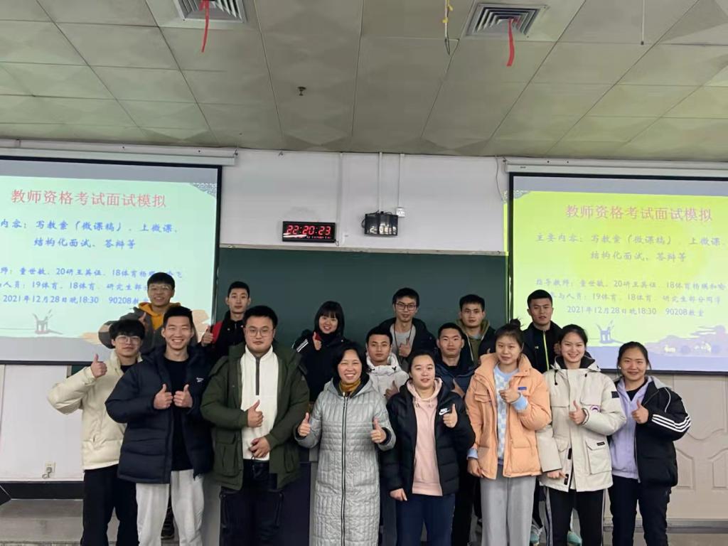 1月6日,获评2021年买球(中国)官方网站师德先进个人的体育学院童世敏教授为即将参加教师资格面试学生进行模拟训练与专场指导,同时邀请了多位研究生、本科生做经验交流分享。