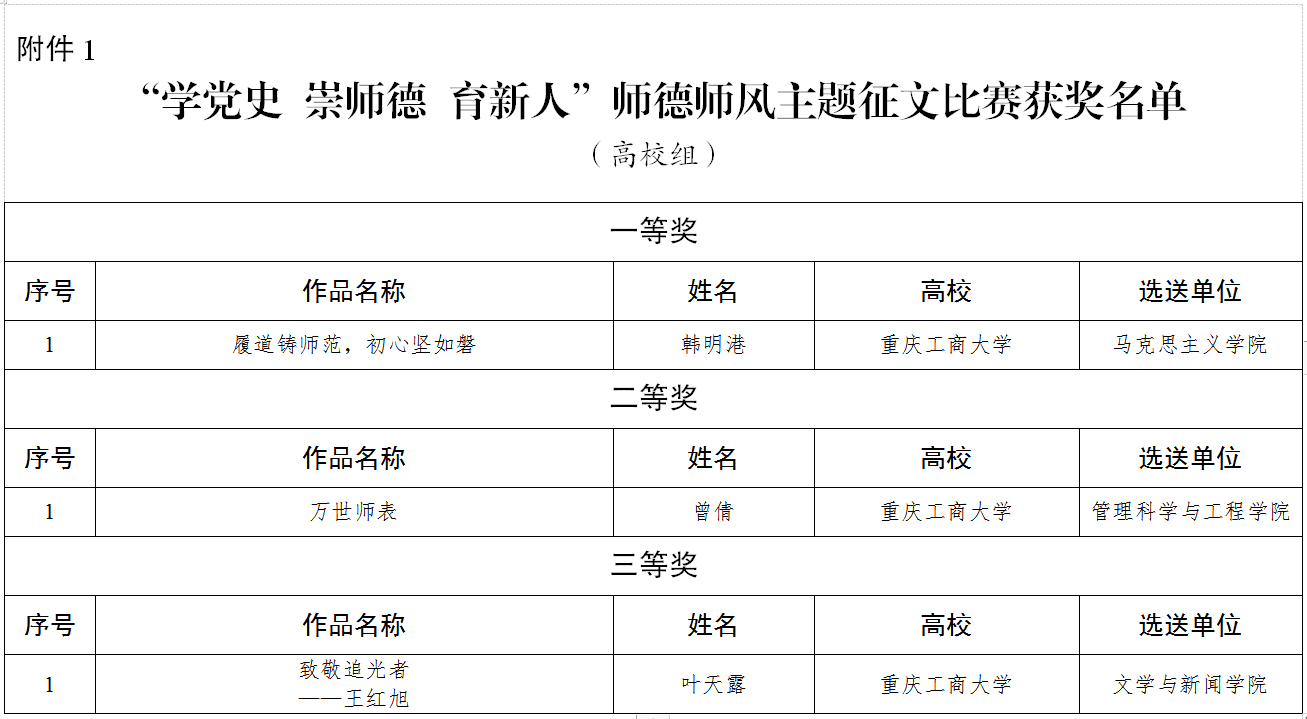 为深入学习贯彻习近平总书记关于教育的重要论述和“七一”重要讲话精神,市教委组织开展了2021年“学党史 崇师德 育新人”师德师风主题征文比赛和优秀师德师风案例评选,我校征文作品《履道铸师范,初心坚如磐》获一等奖、《万世师表》获二等奖、《致敬追光者——王红旭》获三等奖,案例《党建引领下的高校社会科学师德师风建设》获评优秀案例。