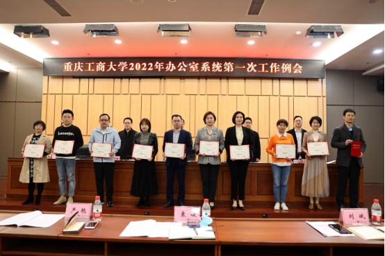会上,宣读了《关于表彰买球(中国)官方网站2021年度办公室系统先进个人的决定》,并为获评的10名先进个人颁发了证书。罗勇对各二级单位“十四五”规划、2022年度工作计划提了工作要求;党政办公室副主任蒋年韬、刘乃睿、郭敏,分别对市委巡视整改成效综合评估、办公会议题申报规范性、疫情防控、教授工作室管理、校庆工作推进等做了工作布置。