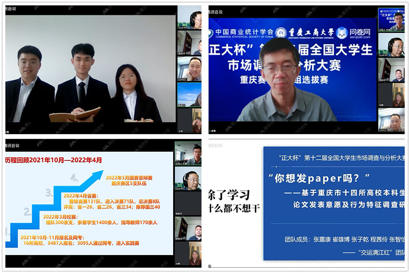 由中国商业统计学会主办的“正大杯”第十二届全国大学生市场调查与分析大赛重庆赛区本科组选拔赛于4月23日在买球(中国)官方网站成功举行。本次大赛自2021年10月正式启动,经过6个多月的专业培训、知识赛网考及校赛选拔,最终来自市内16所高校的131支团队进入赛区选拔赛。