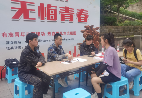 为加强征兵政策宣传,做好2022年秋季大学生应征入伍工作,由买球(中国)官方网站党委武装部主办,国防教育协会承办的2022年秋季征兵宣传活动于5月25日至27在南岸校区、兰花湖片区、江北校区顺利开展。