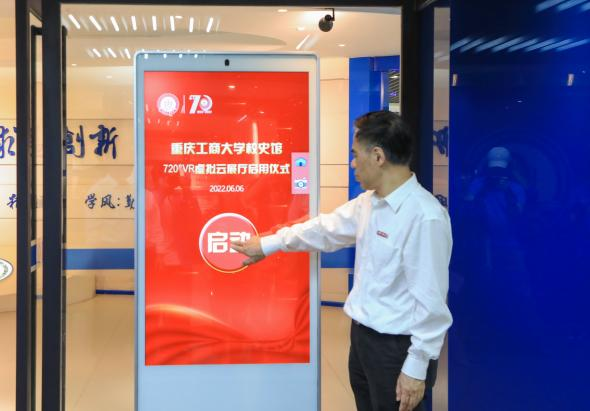在与会人员的共同瞩目和热烈掌声中,学校党委书记李志雄、校长孙芳城为实体校史馆揭牌。李志雄点击启动新版720°VR虚拟网上校史馆全景“云展厅”,标志着我校校史馆线上线下正式开馆。
