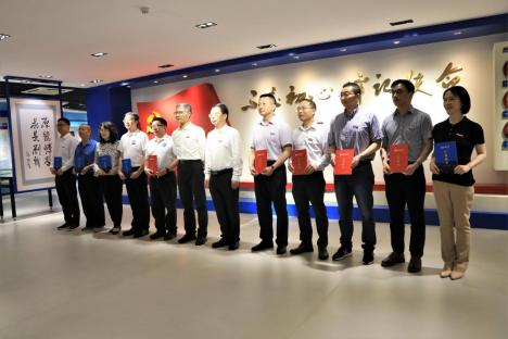 党委常委、副校长陈运超,党委常委、纪委书记、监察专员周航为校史馆史料捐赠的国际合作与交流处、国内合作发展处、文学与新闻学院、法学与社会学学院、人工智能学院、机械工程学院、艺术学院、体育学院、学术期刊社、经济管理实验教学中心等校内10个单位颁发了捐赠证书。