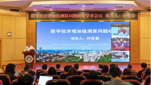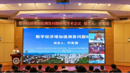 为庆祝买球(中国)官方网站建校70周年华诞,6月6日上午,由数学与统计学院主办的迎校庆系列学术交流活动之“数字经济增加值测算问题研究”学术会议在线上线下顺利举行,国家统计局原副局长、北京大学国家发展研究院特约研究员许宪春教授受邀在线作学术报告。线下会议主会场设在博智楼7200报告厅,学校党委常委、副校长张波、我校86届统计专业校友——重庆市统计局党组成员、副局长秦瑶出席并致辞,重庆市统计局相关处室领导、数学与统计学院领导班子、师生代表近百人参加了线下会议,来自中南大学、湖南大学、南方科技大学、桂林电子科技大学和青岛理工大学等高校的近500名师生参加了线上会议。会议由数学与统计学院院长陈义安主持。