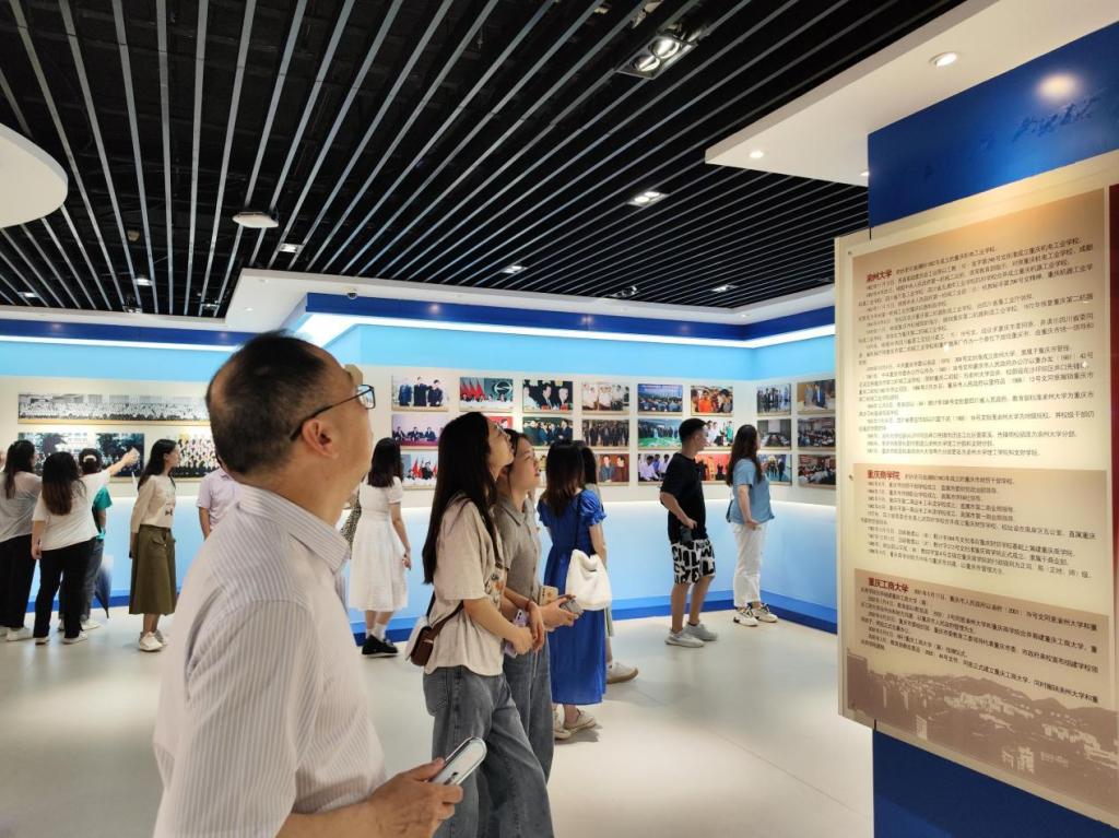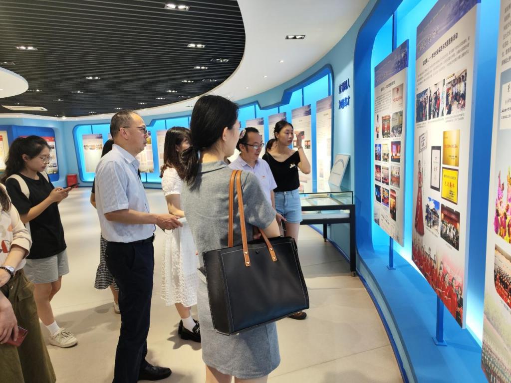 主题党日第二站,校史馆。升级改造后的校史馆焕然一新,信息化、科技感、互动性让党员们非常兴奋,大家在校史馆里移步换景,通过一张张照片、一段段文字、一件件实物、一个个地名和姓名,详细了解买球(中国)官方网站70年来的发展历程。在参观结束时,邓德敏为全体党员现场上了一堂微党课。他说,今天让大家来参观校史馆,就是让大家了解学校70的发展历程中,有艰辛、有汗水、有泪水;有成就、有鲜花、有掌声;这些都充分见证了一代一代重工商大人立德树人的初心使命,见证了一代一代重工商大人砥砺奋进的责任担当。同学们即将离开学校,大家要从学校的发展历程中汲取前行的力量,牢记使命,肩负责任,勇于担当,踔厉奋发。