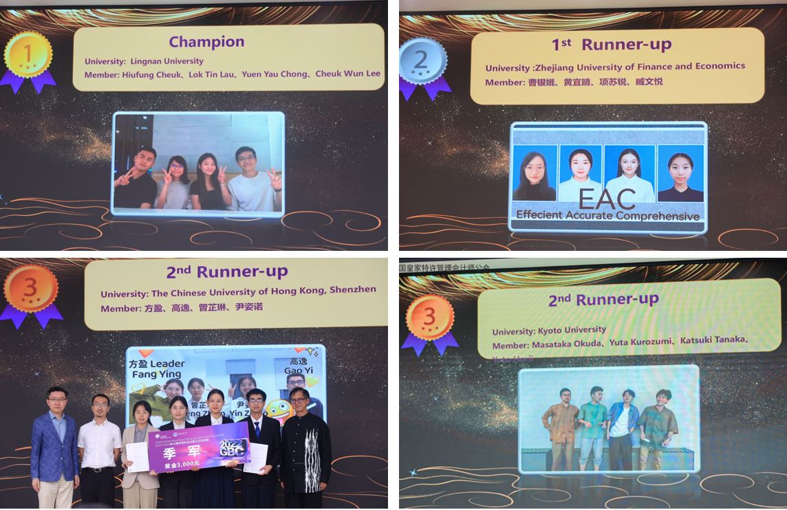 最终香港岭南大学404队夺得冠军,亚军及季军则分别由浙江财经大学EAC队和香港中文大学(深圳)Aduiduidui队、日本京都大学Kyoto Kailba队获得;“最佳商业潜质个人奖”则由404队的Hiufang Cheuk同学获得;优胜奖获奖队伍为买球(中国)官方网站Navigator队和Polaris队、东北财经大学Elite队、广东外语外贸大学Illusive Stars队、澳门大学Excellence队、蒙古财经大学Ufecomptes队。王天若评委还当即对11位参赛选手发出了就职邀请,其中包括我校两支团队的5名同学。