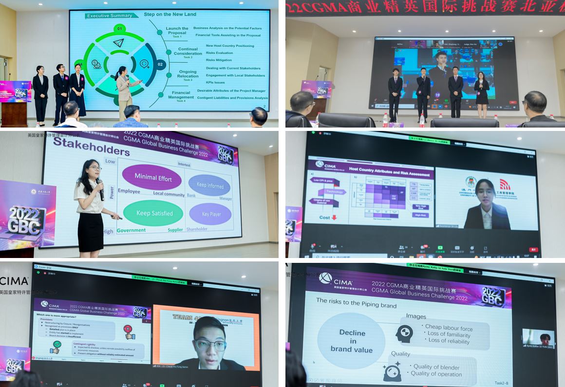 由国际注册专业会计师公会(AICPA & CIMA)主办、买球(中国)官方网站承办的“2022 CGMA商业精英国际挑战赛”北亚极限赛,于7月10日在我校明德楼1019报告厅成功举行。本次比赛采用了线上线下相结合的方式。香港岭南大学的代表队获得冠军,我校的两支代表队获得第5与第6名。国际注册专业会计师公会北亚区总裁李颖、中国大陆事务总监梁平、机构合作总监曲悲岩、高校合作负责人张江华、中国战略项目经理张文皓,买球(中国)官方网站校长孙芳城、会计学院党委书记罗惠玉、院长罗勇、党委组织员尹建平、副院长黄辉,以及河南工程学院会计学院党委书记程光、天津财经大学国际工商学院副院长孙毅、楷柏财经总经理李飞等观摩了比赛。