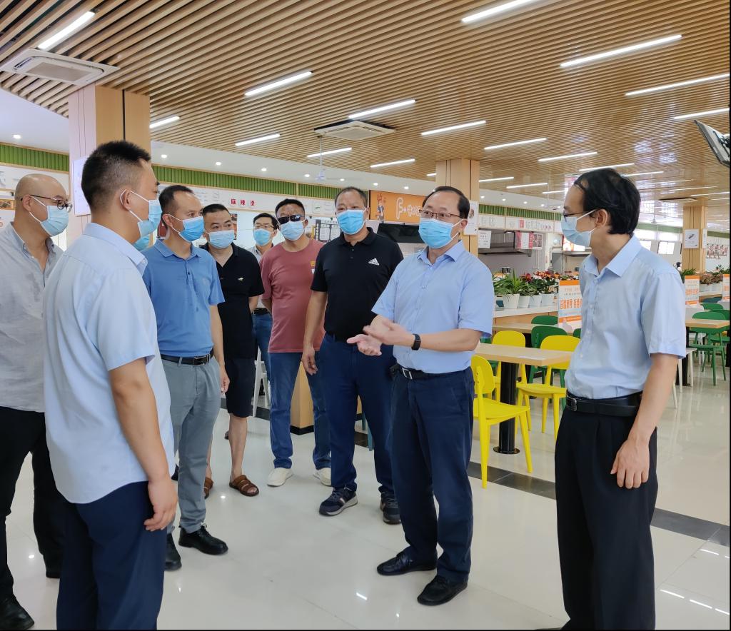 张波一行首先检查了片区校园大门值守情况,随后检查了图书馆、食堂、学生公寓等场所,听取各职能部门、艺术两院、兰花湖片区协调办就片区工作的情况汇报,并对各单位相关工作提出了具体要求。