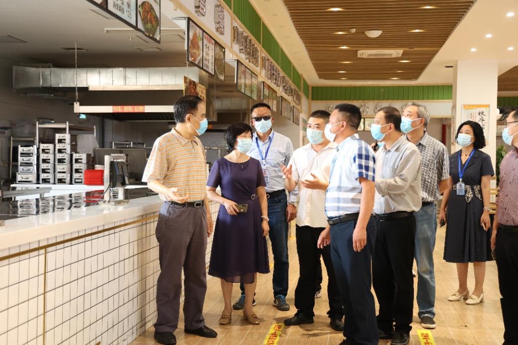 在江北校区,李志雄和李国军一行依次走访查看了校门进出人员管控、柏园食堂就餐大厅、操作间燃气管道及燃气报警装置、校区核酸检测点及快递取件点等重点场所部位。