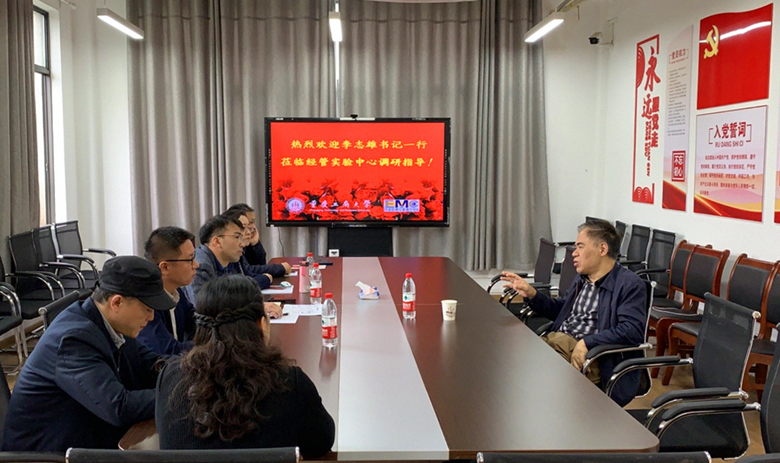10月28日下午,学校党委书记李志雄到经济管理实验教学中心调研指导工作并与中心教职工座谈。中心主任庞楷、副主任朱沙陪同李志雄实地查看了部分已建成投入使用的特色实验室和支部党建文化墙。