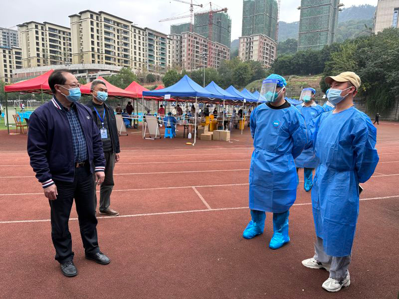 面对当前我市严峻复杂的疫情形势,全校上下闻令而动,以最严的要求、最快的速度、最实的举措,迅速吹响了抗疫集结号,包括校领导在内的各级领导干部、教师志愿者、学生管理工作队伍、后勤人员、安保人员等入住学校,为进一步落实疫情防控工作相关要求,确保学校教育教学管理工作平稳有序。近日,学校党委书记李志雄,党委副书记、校长孙芳城等校领导分头到各校片区调研指导疫情防控管理措施落实情况,看望慰问值守一线的工作人员和在校学生。
