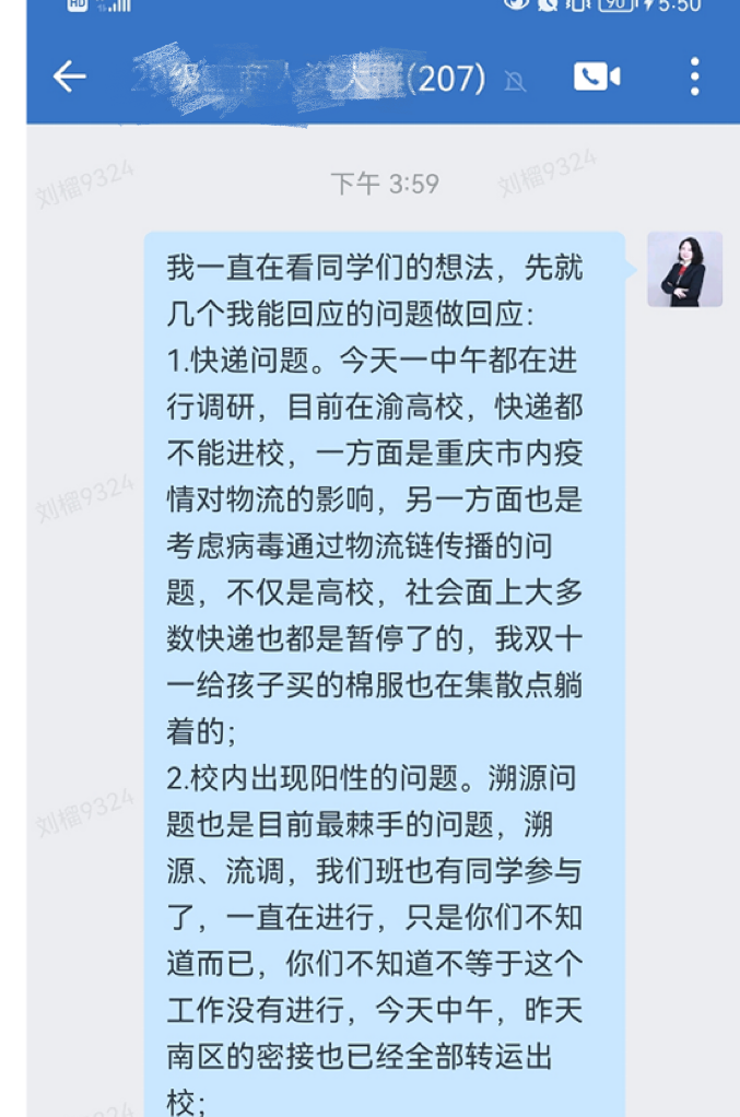 近日,部分辅导员给所带学生的班级群发送信息,对同学们部分担忧和质疑进行了回应,得到了同学们的理解。
