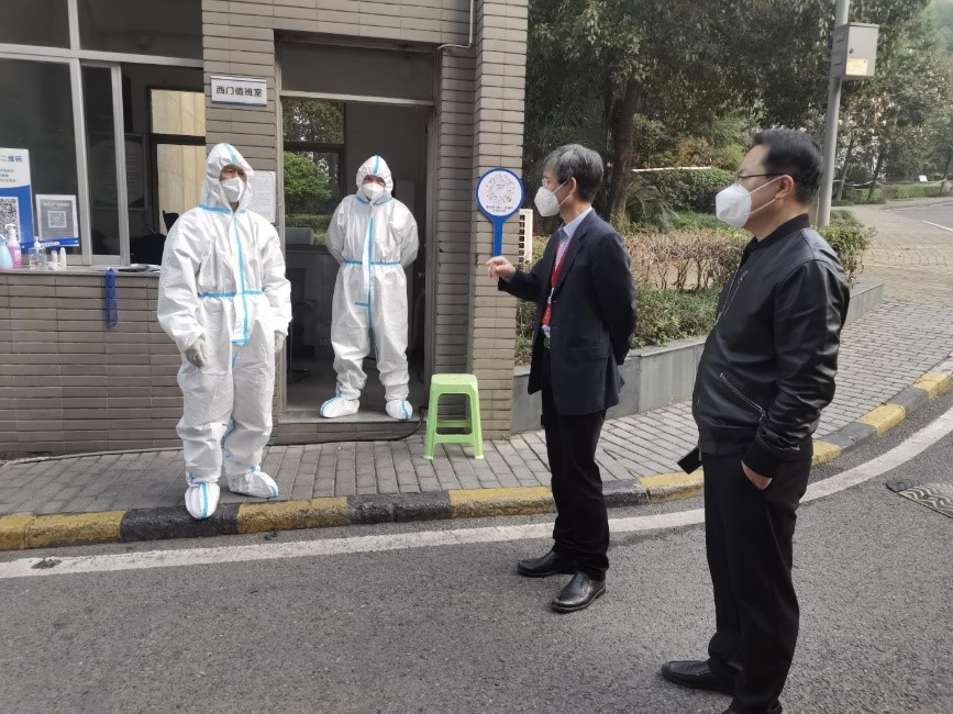 2022年11月23日,江北校区突发疫情,学校党委紧急向江北校区增补专班力量,校长孙芳城带队入驻江北校区,与陈运超副校长一起迅速组建疫情防控应急指挥部,部署安排开展流调溯源、密接转运、送餐保供、心理疏导等工作。江北区政府领导多次到现场调研,重庆市教委、江北区教委相关领导及重庆医科大学流调专家入驻江北校区指导疫情防控工作。