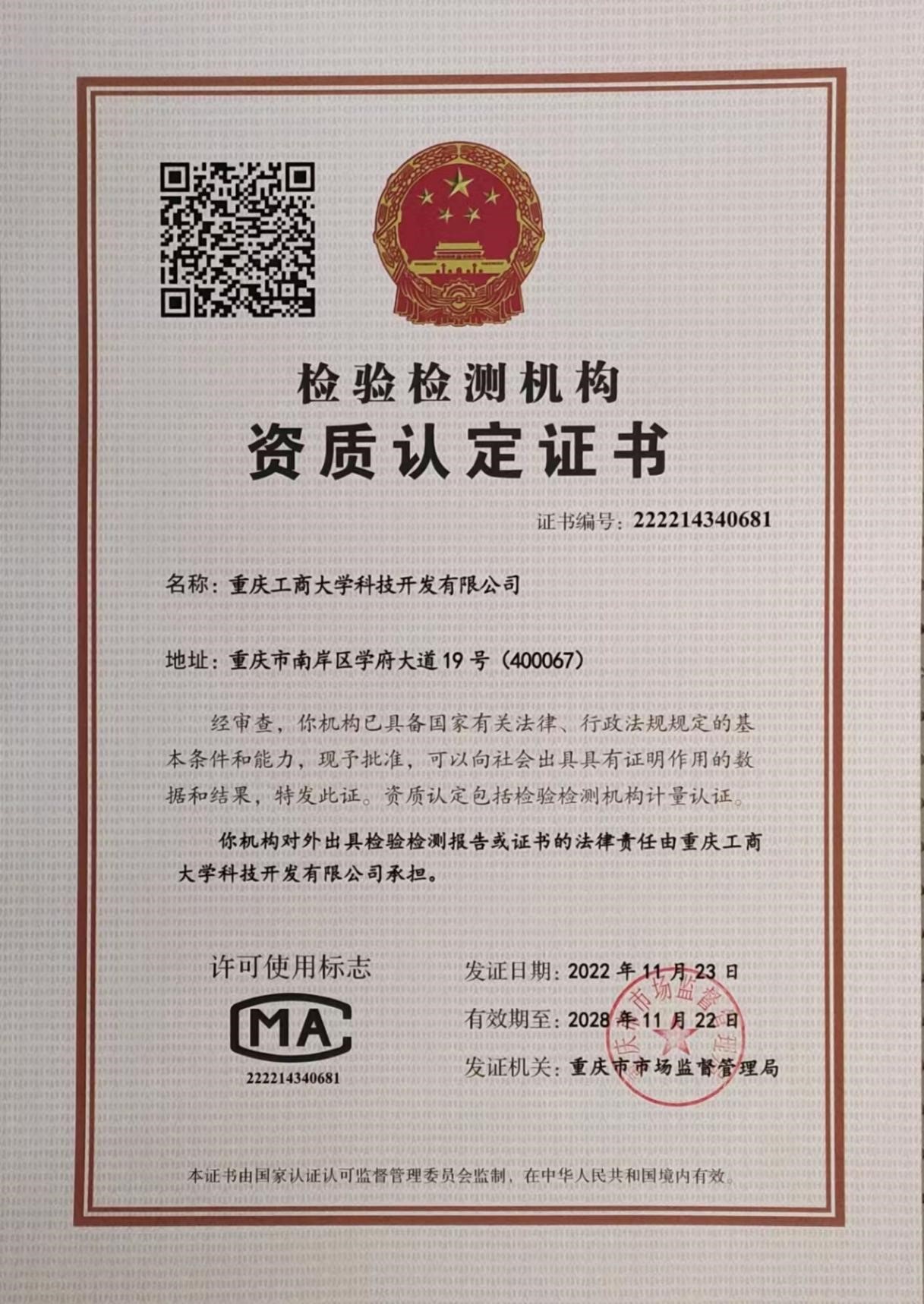 此次资质认定,我校已正式具有可向社会出具第三方油品检测报告的业务资质,成为重庆市唯一一家在油品检测领域具有CMA资质的高校,有力支撑了我校废油资源化技术与装备教育部工程研究中心的建设与发展。