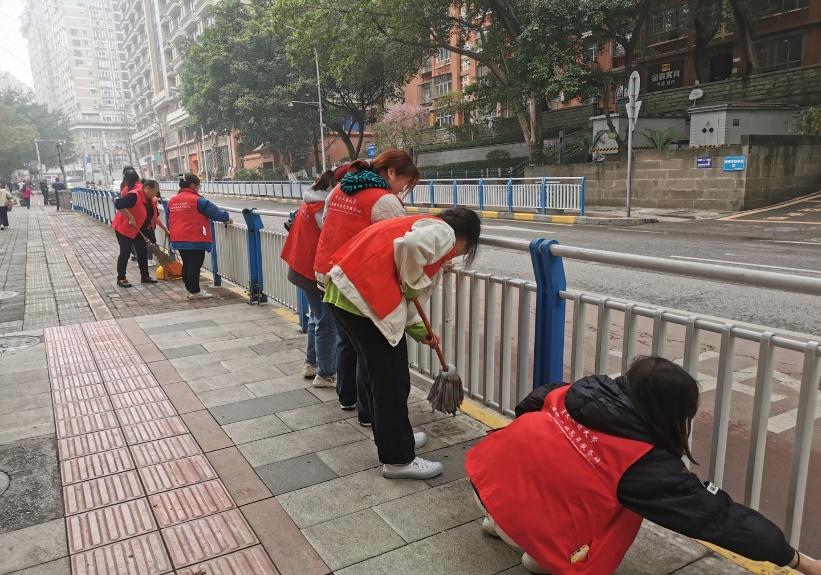 3月3日上午,外国语学院党员服务站的青年志愿们来到重庆市渝中区大溪沟街道人和街社区,与当地居委会联合开展了“敬老爱幼献真情,雷锋精神伴我行”学雷锋志愿服务活动。志愿者们在人和街面向党旗唱响《学习雷锋好榜样》,在歌声中感悟雷锋精神;在街道做起清洁,在实践中践行雷锋精神。