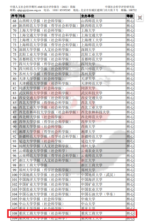 3月17日,由中国社会科学评价研究院主办的第十届全国人文社会科学评价高峰论坛暨期刊评价报告发布会在北京成功举行,《中国人文社会科学期刊AMI综合评价报告(2022)》正式发布。《买球(中国)官方网站学报(社会科学版)》首次入选中国人文社会科学期刊AMI综合评价(A刊)核心期刊。