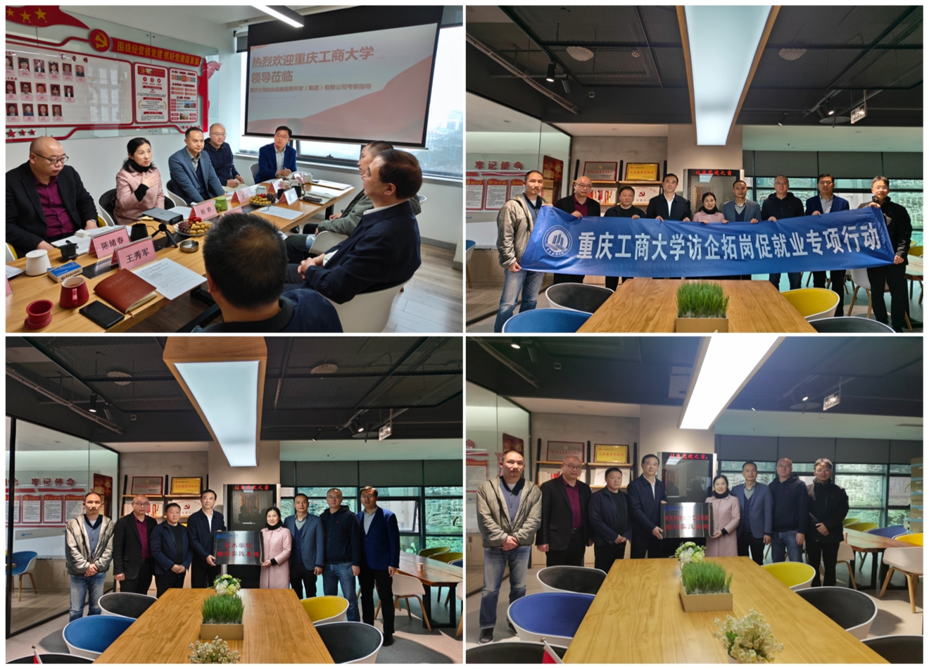 3月23日下午,学校党委常委、副校长柏群带领艺术学院、现代国际设计艺术学院班子成员唐玺、陈绪春、李洋及科室主任一行到重庆公用站台设施投资开发(集团)有限公司开展访企拓岗促就业专项行动,集团公司董事长孙渝军、财务总监王秀军和营销中心经理腾可等热忱接待了柏群一行。