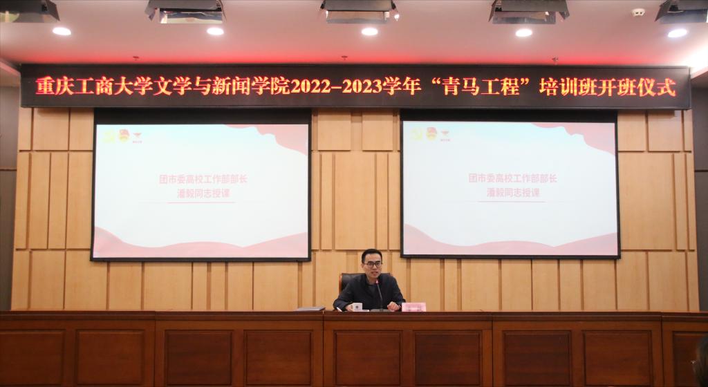 4月3日上午,团市委高校工作部部长潘毅出席文学与新闻学院“青马工程”开班仪式,并为培训班授旗,文学与新闻学院党委书记于频,党委副书记、院长殷俊,党委副书记、纪委书记程元元参加开班仪式,仪式由程元元主持。