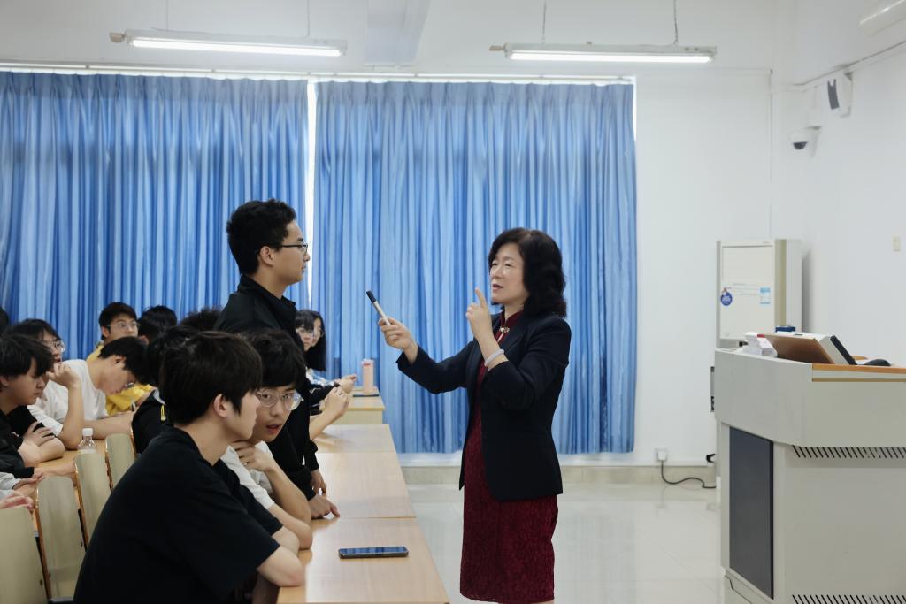 课程最后,宋豫与同学们就“我国经济社会发展在过去五年取得的重大成就”和“对于‘坚持高质量发展’的认识”进行了交流互动。她指出,当代青年生逢其时,施展才干的舞台无比广阔,实现梦想的前景无比光明。党的二十大擘画的宏图盛景,既属于国家和民族的,也属于当今青年一代的是青年成长进步、建功立业的大好际遇,更是青年传承历史、开拓未来的神圣责任。她勉励同学们要把握时代赋予的机会,与民族同进步,与祖国共成长,坚定理想信念,保持奋斗的姿态,立志做有理想、敢担当、能吃苦、肯奋斗的新时代好青年,让青春在为国家、为人民奉献中发出绚丽光彩。