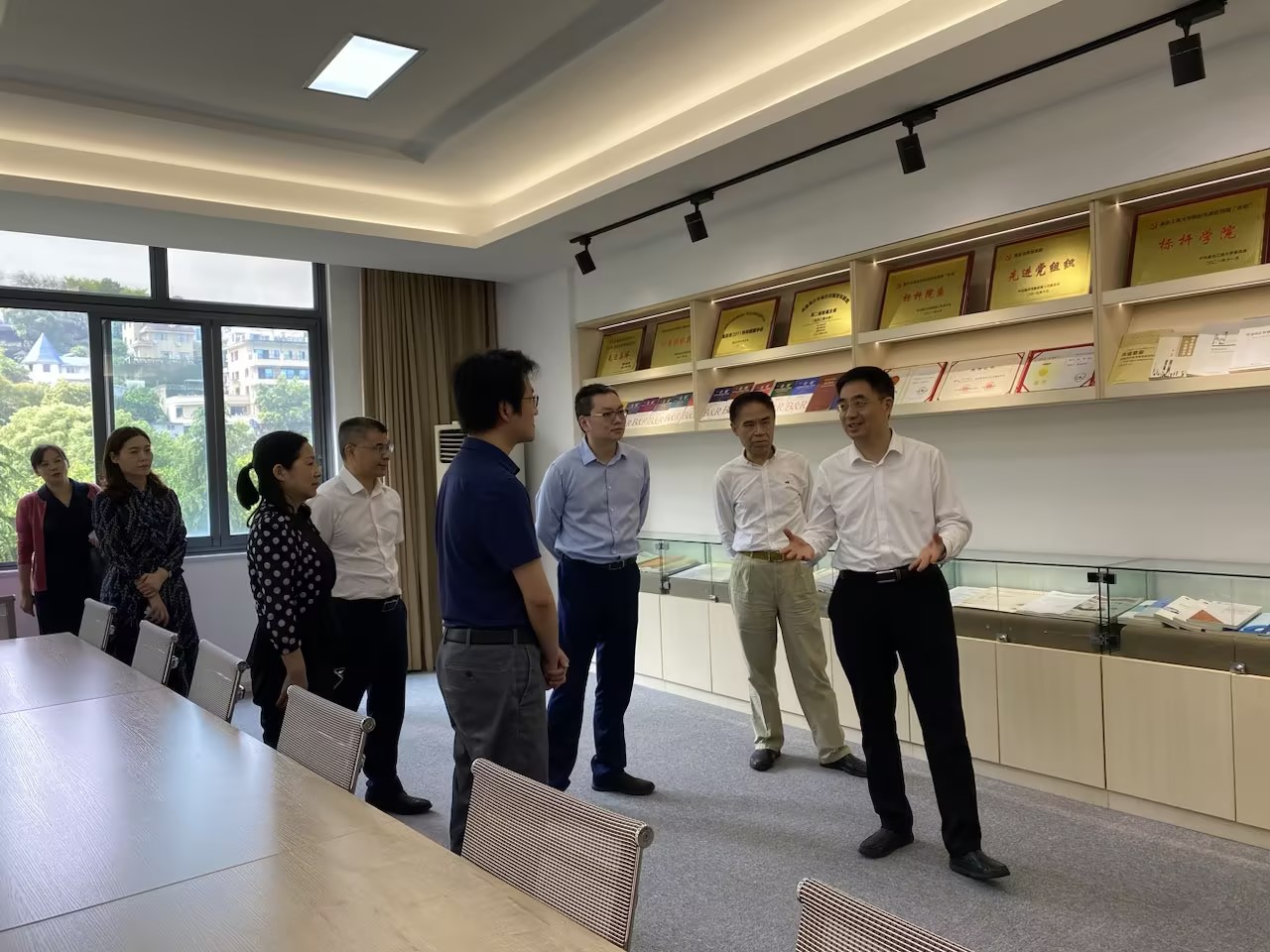 4月19日,市委教育工委书记、市教委主任刘宴兵率队到学校调研学习贯彻习近平新时代中国特色社会主义思想主题教育开展情况,以及学校事业发展情况。