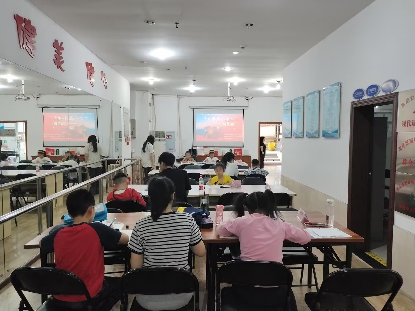 为深入开展学习贯彻习近平新时代中国特色社会主义思想主题教育,在服务社会实践中增强双创学生支部师生党性修养,让主题教育开展得有声有色见实效。5月13日上午,数学与统计学院双创支部师生党员和入党积极分子走进南岸区南坪镇渝能社区,开展“大手牵小手,阳光助学行”公益实践活动,为社区小学生进行学业公益辅导。