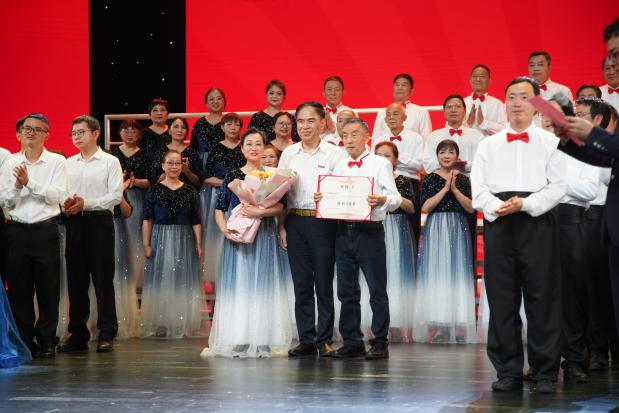 在场校领导分别为获奖团体颁发一二三等奖和“优秀演出奖”。李志雄为离退休工作部·老年大学合唱团颁发“优秀演出奖”。