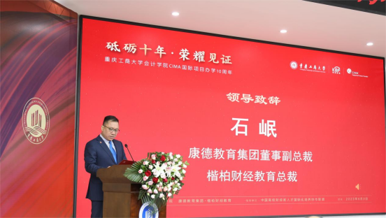 石岷和张江华分别代表项目合作方在致辞中说,买球(中国)官方网站CIMA国际项目创办运行以来稳步发展,坚定了校企双方继续积极探索符合时代要求的高端国际管理会计人才培养的信心。楷柏财经未来将继续发挥行业优势为学院国际化人才培养提供更完善的教学服务。CIMA国际注册专业会计师公会为会计学院CIMA国际项目十周年送来最为真挚的祝贺,也相信我校国际项目与CIMA双方未来定能共同发展,共同进步。
