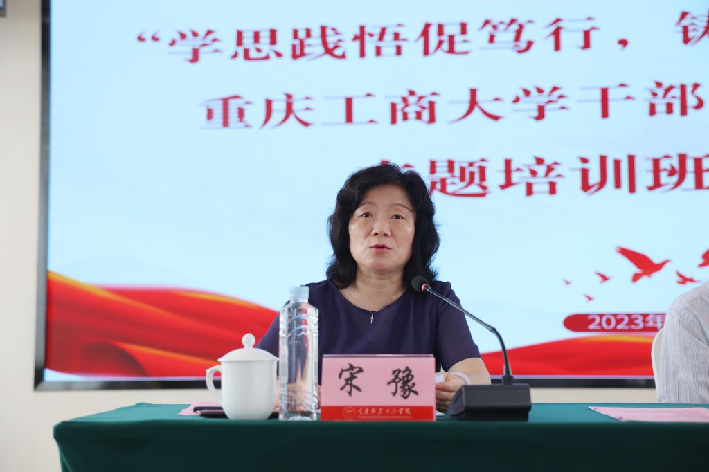 6月14日上午,培训班开班式在红岩干部学院风荷会议室举行,重庆红岩联线文化发展管理中心党委书记、红岩干部学院院长朱军,我校党委书记李志雄,党委副书记宋豫,党委常委、党委组织部部长郑夕春出席。