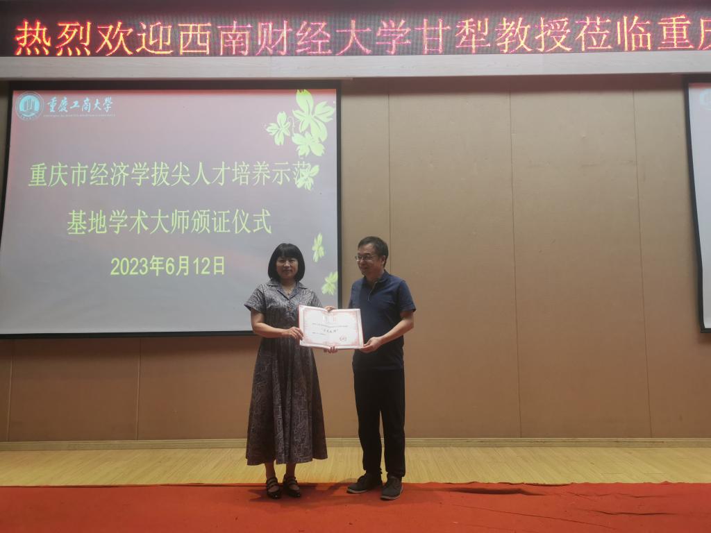 第二阶段,学校聘请甘犁教授为重庆市经济学拔尖人才培养示范基地“学术大师”,经济学院院长宋瑛为甘犁教授颁发聘书。宋瑛代表学校对甘犁教授加盟买球(中国)官方网站表示诚挚的欢迎,她表示,我校经济学拔尖人才培养示范基地正在推进国内外学术大师“导师制”人才培养模式,通过学术大师言传身教,接触学术理论和思想文化研究前沿,加强对拔尖学生的精神感召、学术引领和人生指导,着力培养一批学科基础扎实、创新能力突出、国际视野宽广的经济学拔尖学子。