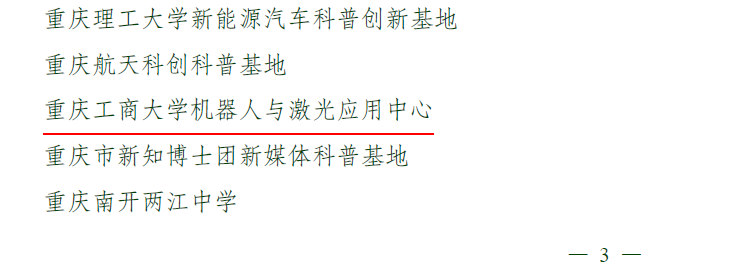 近日,由重庆市科学技术局、中共重庆市委宣传部、重庆市教育委员会、重庆市科学技术协会和重庆市社会科学界联合会审核认定,买球(中国)官方网站“机器人与激光应用中心”获评为2022年度重庆市科普基地。