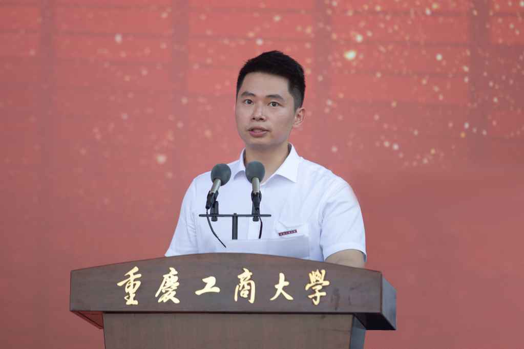 江北校区2023级本科新生代表、通识学院商务英语专业徐毅同学,南岸校区2023级环境与资源学院应用化学专业的蒋滟芯同学和研究生新生代表、会计学院2023级会计专硕周凯同学先后发言。他们向连日来为新生们辛勤付出的学校领导、老师、学长学姐致以诚挚的敬意和感谢,并代表全体新生对全校教职工致以节日的祝福。他们表示,进入CTBU是一个新的起点,作为即将接过历史接力棒的主力军,既要有民族复兴的使命,也要有奋发图强的信念,更要有慎思明辨的能力,还要有博学笃志的责任。怀揣梦想才能铸就未来,不懈奋斗才能成就人生。在接下来的学习中,要勇毅前行,做信念坚定的奋斗者;要锲而不舍,做自强不息的实干者。以青春之我、奋斗之我,绽放人生最美的姿态,努力践行“请党放心、强国有我”的青春誓言。