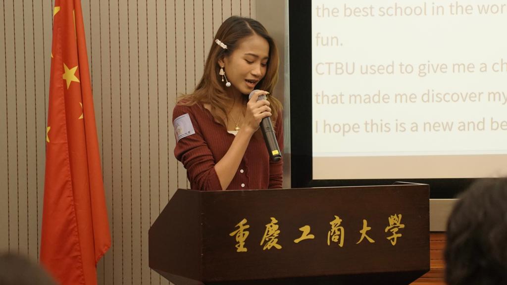 文学与新闻学院院长殷俊、工商管理学院副院长邱继勤对同学们表示了热烈欢迎并提出了学好专业课程的建议和要求。国际合作与交流处处长、留学生院院长张轶代表留学生院讲话,他激励同学们用丰富的学识充实自己,以开放的胸襟结交朋友,传承工商精神,增进国际理解。来自泰国的新生代表陈勉也作了发言,她在这里完成了本科学业,工作之后又选择回母校深造读研。她说,作为学姐,她衷心希望新同学们能在工商大学找到未来发展的方向,努力成为更好的自己。