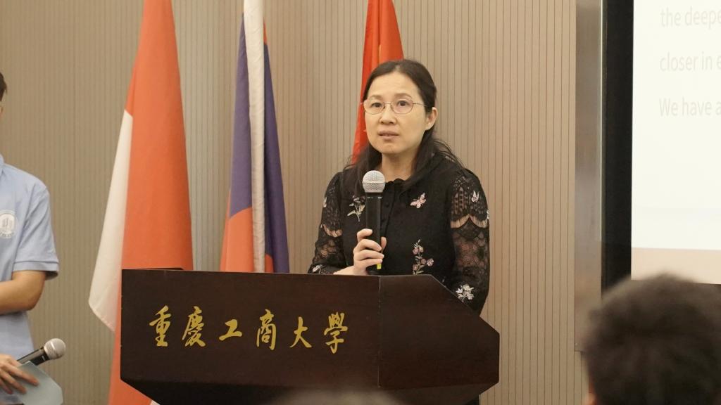 典礼在优美的学校风光宣传片中拉开帷幕。副校长柏群致辞,她首先对同学们的到来表示最热烈的欢迎,并简要介绍了学校在学科建设、人才培养、教学科研、师资力量及平台建设等方面取得的优异成绩。她说,重庆作为西部唯一的直辖市,处在“一带一路”和长江经济带联结点上,有着独特的区位优势。对于国际学生,特别是来自“一带一路”沿线国家的学生,这里将是同学们未来事业发展的重要起点。柏群强调,国际学生在工商大学求学期间,要勤学善思,多与师长交流,以包容的心态对待文化冲突,尽快适应和融入买球(中国)官方网站这个温暖的大家庭。