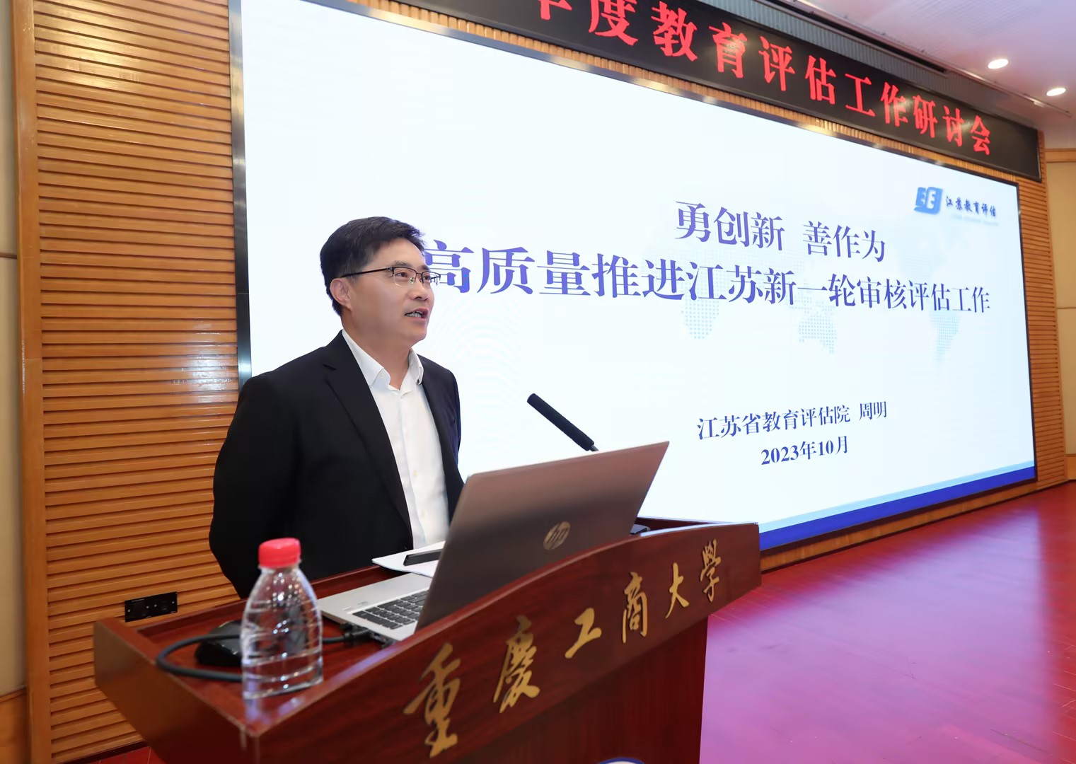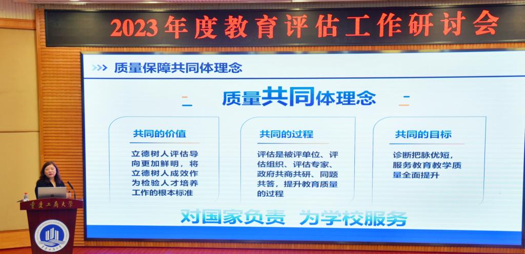10月12日-14日,由教育部教育质量评估中心主办,重庆市教育评估院承办,我校协办的2023年度教育评估工作研讨会在我校顺利召开。教育部教育质量评估中心主任范唯出席会议并作主旨报告,重庆市教育委员会一级巡视员莫龙飞、我校副校长李敬出席会议并致辞。会议由评估中心副主任周爱军主持,全国有关地方教育行政部门及33家教育评估机构的代表参会,学校教务处、评估办负责人,各学院党委书记、院长、教学副院长、教师代表参加了会议。