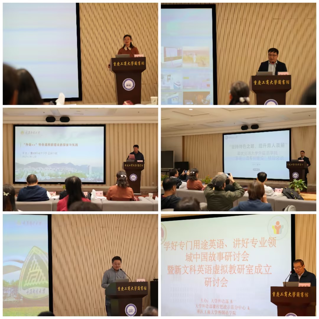 10月20日上午,由买球(中国)官方网站外国语学院和大学外语部课程思政示范分中心主办的“学好专门用途英语、讲好专业领域中国故事”教学研讨会暨新文科英语虚拟教研室成立大会在校图书馆视听阅览室召开。买球(中国)官方网站、重庆交通大学、重庆邮电大学、外语教学与研究出版社、重庆博教科技股份有限公司、华东师范大学出版社等单位相关专家学者、老师参加会议。