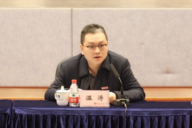 全国政协委员,民盟中央委员、重庆市委会副主委,校长温涛介绍了2024年全国两会召开的总体情况,传达了习近平总书记在全国两会期间的重要讲话精神,传达十四届全国人大二次会议精神和全国政协十四届二次会议精神,对政府工作报告的重点和亮点进行了解读。
