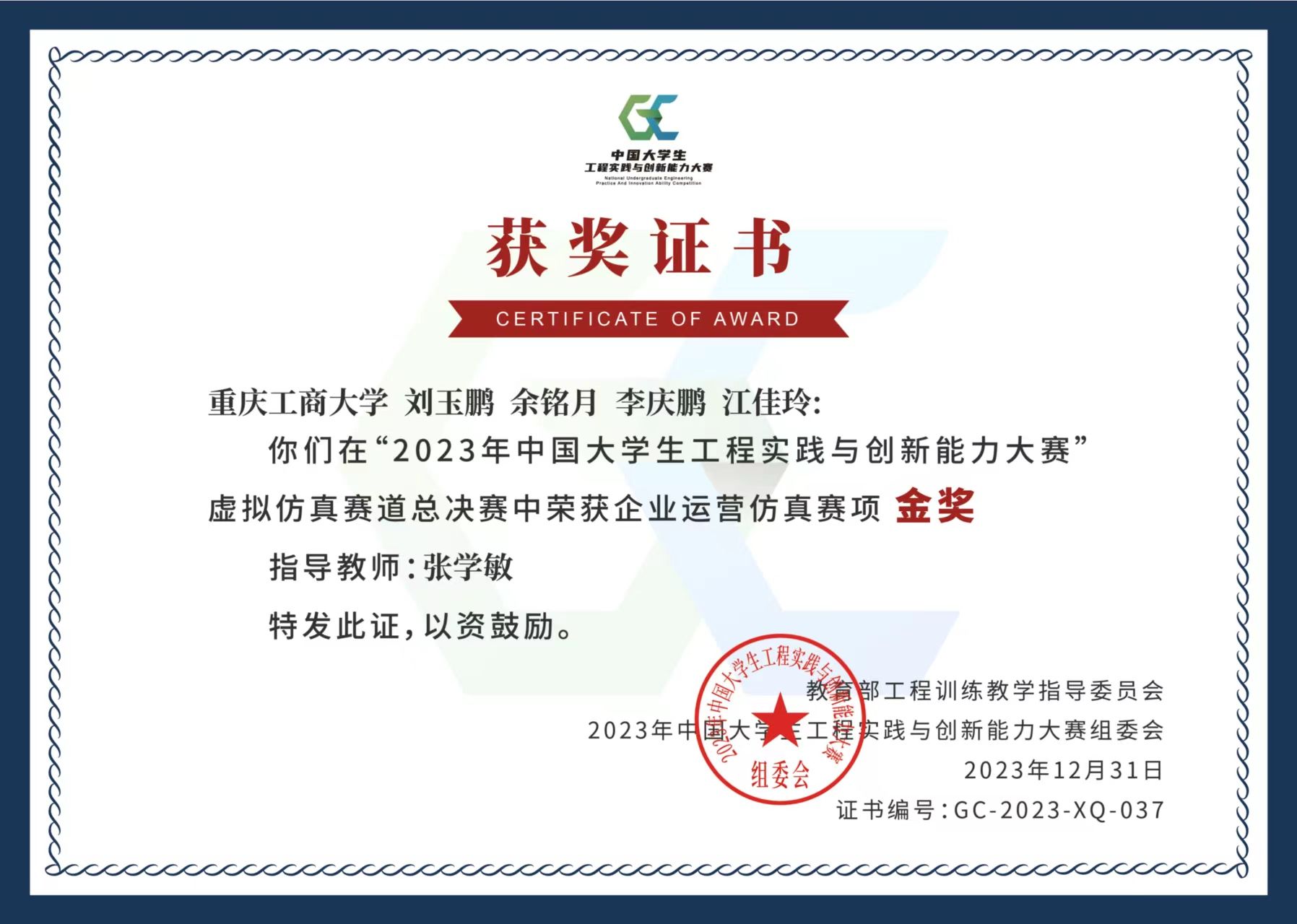 我校在2023年中国大学生工程实践与创新能力大赛总决赛中获奖名单