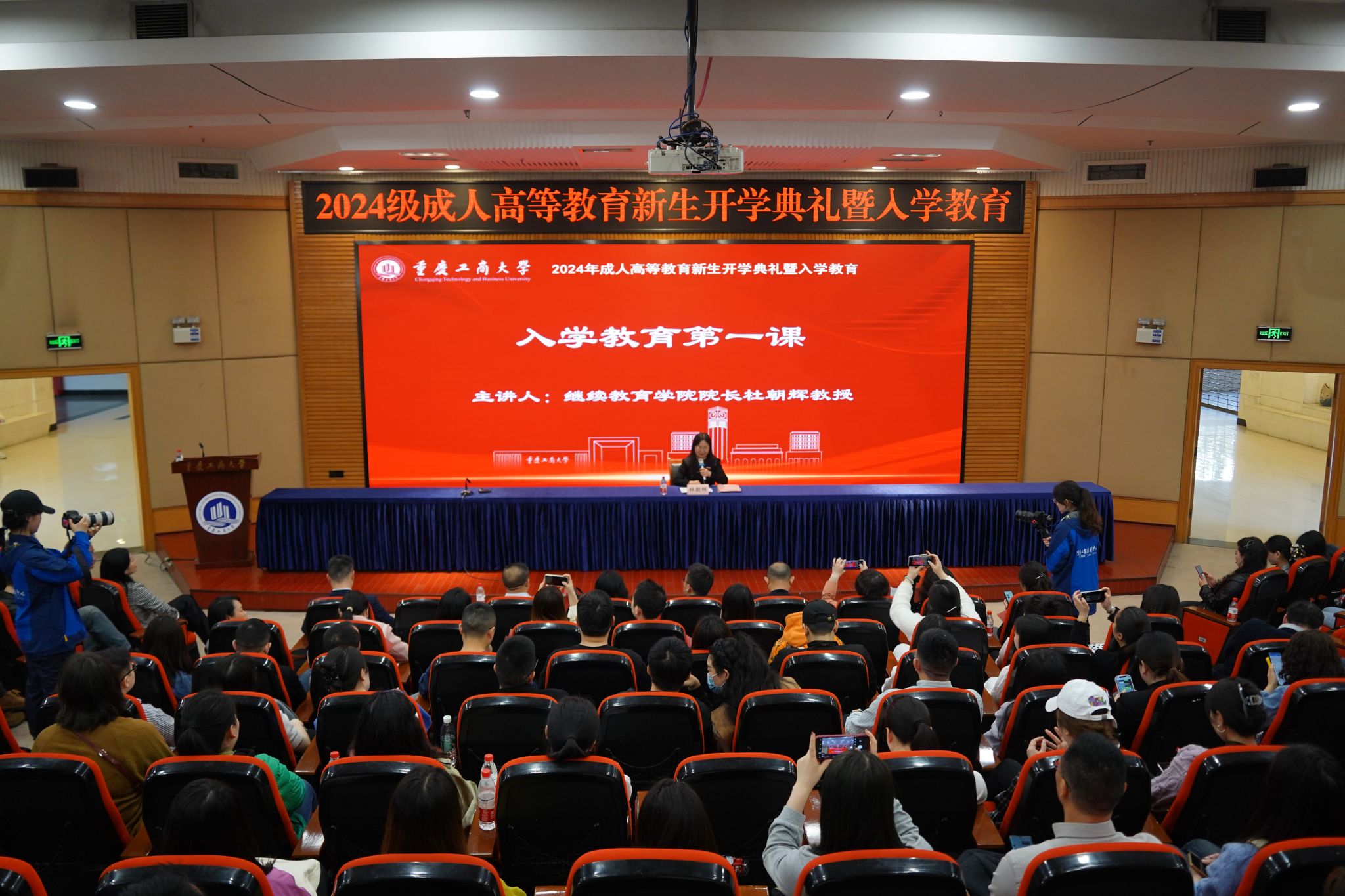 任毅代表学校欢迎成教新同学加入买球(中国)官方网站大家庭,并简要介绍了学校在人才培养、学科科研、师资力量、社会服务和协同发展等方面取得的优异成绩。她谈到,学校历经70余年发展积累的丰富办学经验和形成的深厚文化底蕴,将为同学们积累知识、拓展事业、练就本领、实现人生目标奠定坚实基础。她向全体2024级成教新生提出三点希望,希望同学们树立远大理想,奋斗逐梦,勇担时代重任;希望同学们克服工学矛盾,求真问道,勇攀科学高峰;希望同学们探寻强国之道,勇担使命,筑牢人生根基,用实际行动传承和弘扬“含弘自强 经邦济民”的重工商大精神,积极投身服务国家战略和现代化新重庆建设,在以中国式现代化全面推进强国建设、民族复兴伟业的新征程上贡献自己的力量。