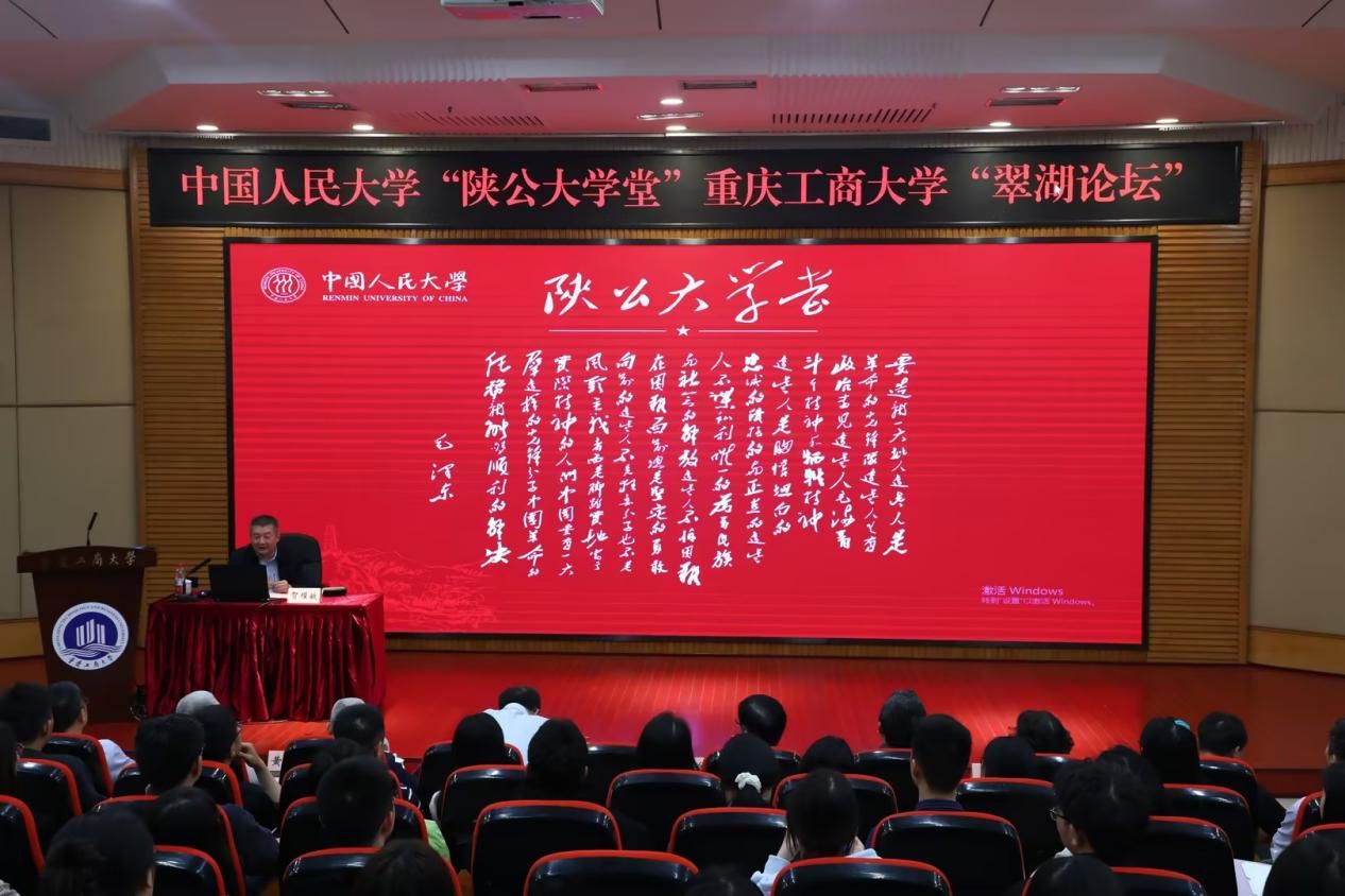 曾维伦在致辞中谈到,“陕公大学堂”公益讲座是中国人民大学独树一帜的先锋课堂,参与承办本次讲座的我校翠湖论坛也有15年的历程,是学校学术教育的重要阵地。今天的讲座是深入贯彻落实习近平新时代中国特色社会主义思想的精神实质和丰富内涵的生动实践,是深入贯彻落实习近平总书记重要讲话精神,传承红色基因、赓续红色血脉的具体行动,更是积极响应落实重庆市人民政府与中国人民大学战略合作框架协议的有力的实践。