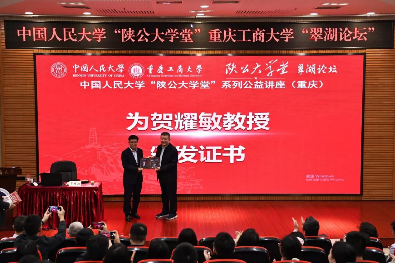 3月30日下午,中国人民大学“陕公大学堂”买球(中国)官方网站“翠湖论坛”讲座在我校博智楼7200报告厅成功举行。近300位中国人大校友代表以及我校师生代表出席本次讲座。讲座由中国人民大学原党委常委、副校长贺耀敏教授主讲。我校党委书记曾维伦致辞,重庆市红十字会党组书记王卫主持。