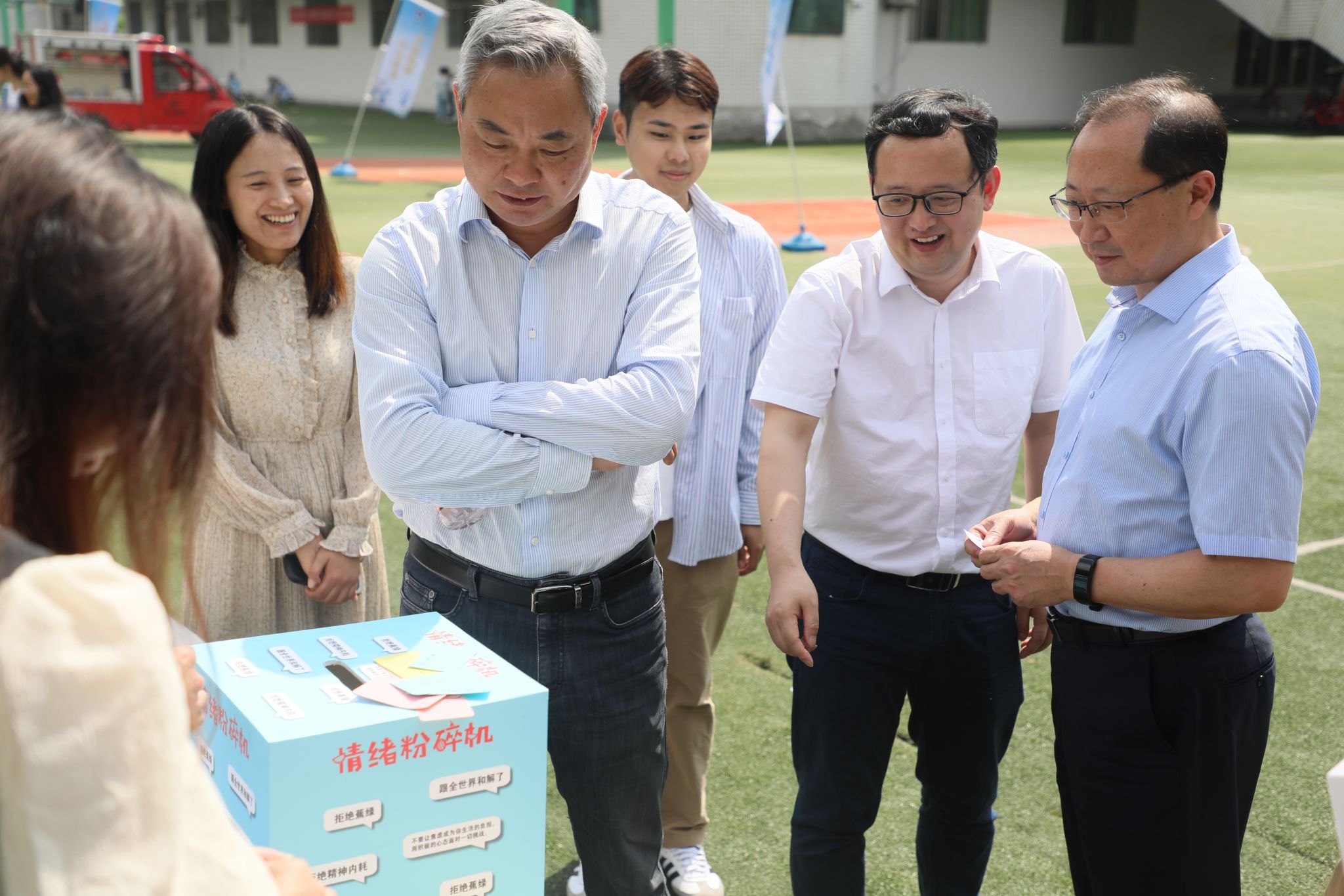 4月19日下午,买球(中国)官方网站的南区篮球场上,一场别开生面的“寓”见美好——平安校园游园会吸引了众多师生的目光。此次活动由学校保卫处、学生处与数学与统计学院联合主办,旨在加强师生的安全教育与法制教育,共同营造一个安全、和谐、美好的校园环境。学校党委常委、副校长张波、李国军到现场与师生们一同参与活动。