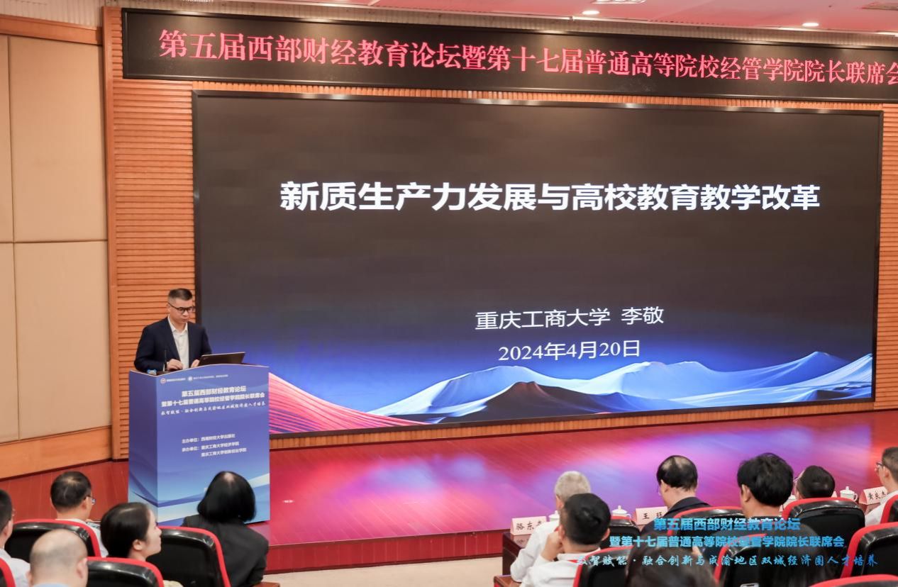 我校经济学院院长宋瑛主持主旨演讲。李敬作关于“新质生产力发展与高校教育教学改革”的主旨演讲,深入阐释了新质生产力的内涵、理论形成、新质生产力理论下高校的教育教学改革关注的内容以及买球(中国)官方网站相关的实践。