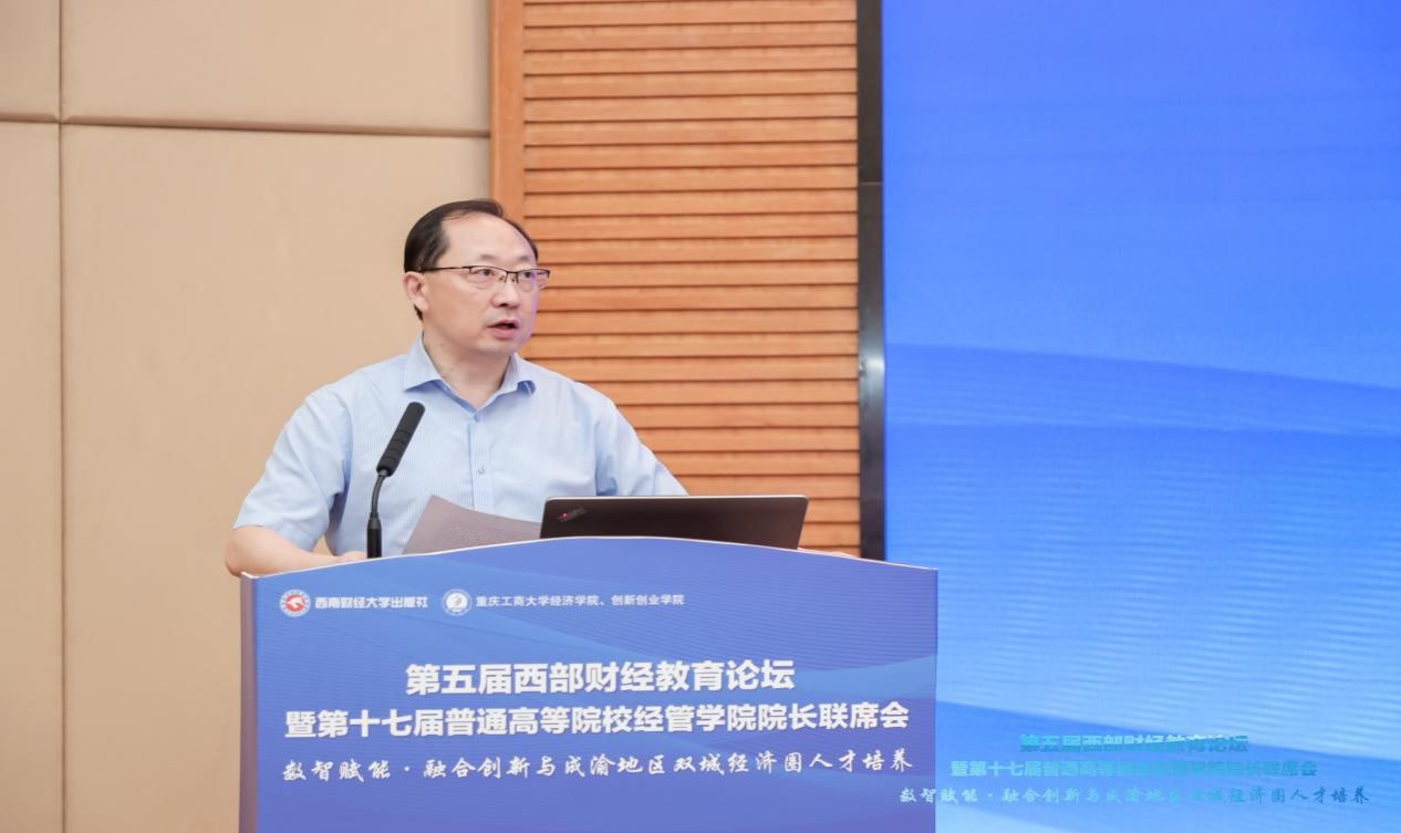 西南财经大学出版社社长冯卫东致辞。他介绍了出版社在学术著作出版、教材出版、图书质量等方面始终把“服务高校、服务作者”作为重要任务及使命。他希望,未来出版社愿在“数智赋能、融合创新与成渝地区双城经济圈人才培养”方面与参会人员一起贡献智慧、共创价值。
