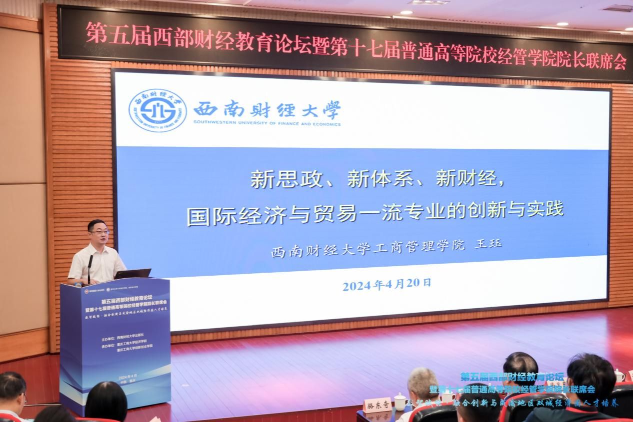 4月19至21日,第五届西部财经教育论坛暨第十七届普通高等院校经管学院院长联席会在买球(中国)官方网站举行。本次会议由西南财经大学出版社主办,买球(中国)官方网站经济学院、创新创业学院承办,来自山东、广东、广西、贵州、青海、西藏以及川渝地区56所普通高等院校经管学院的院长、专家学者、系主任及教师代表200余人参会,他们围绕主题“数智赋能·融合创新与成渝地区双城经济圈人才培养”,共同探讨新时代背景下财经教育的机遇与挑战,共谋经济赋能新策略。买球(中国)官方网站党委常委、副校长李敬主持了开幕式。