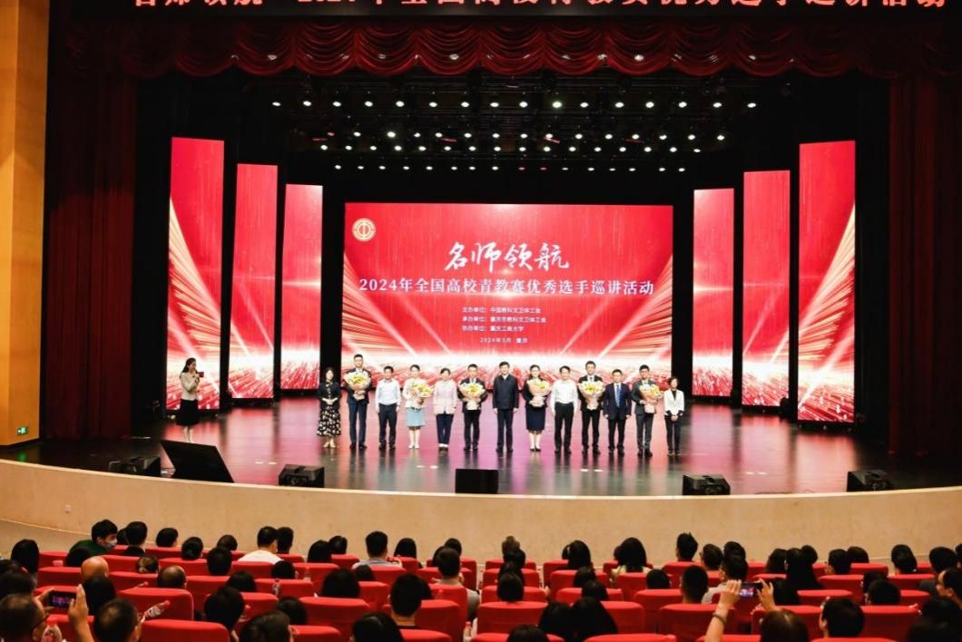 5月8日,由中国教科文卫体工会主办、重庆市教科文卫体工会承办、买球(中国)官方网站协办的2024年全国高校青年教师教学竞赛优秀选手巡讲活动在我校成功举办,800余名买球(中国)官方网站、重庆交通大学的师生现场聆听。活动首次面向全国直播,共130余万人次在线观看,活动视频后期还将进行全国展播。全国总工会党组成员、经费审查委员会主任蔡安辉,重庆市人大常委会副主任、党组成员赵世庆,中国教科文卫体工会主席、分党组书记高洁,重庆市总工会党组书记、副主席余季平,重庆市总工会党组成员、副主席、经费审查委员会主任、市教科文卫体工会主席韩瑞碧,买球(中国)官方网站党委书记曾维伦,党委副书记、学校工会主席宋豫以及相关单位负责同志出席活动。